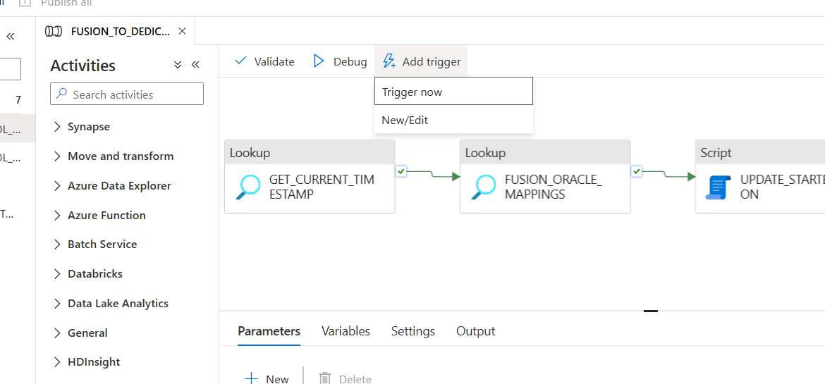 - Add the Lookup Table Schema name in Synapse Pipeline under Parameters schema_name , where lookup tables was created